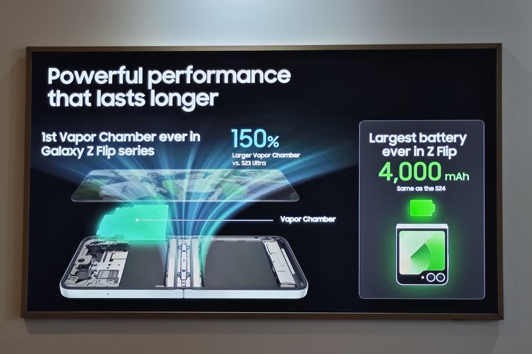 KOMPAS.com/ OIK YUSUF Samsung mengeklaim vapor chamber Galaxy Z Flip 6 150 persen lebih besar dibandingkan milik Galaxy S23 Ultra