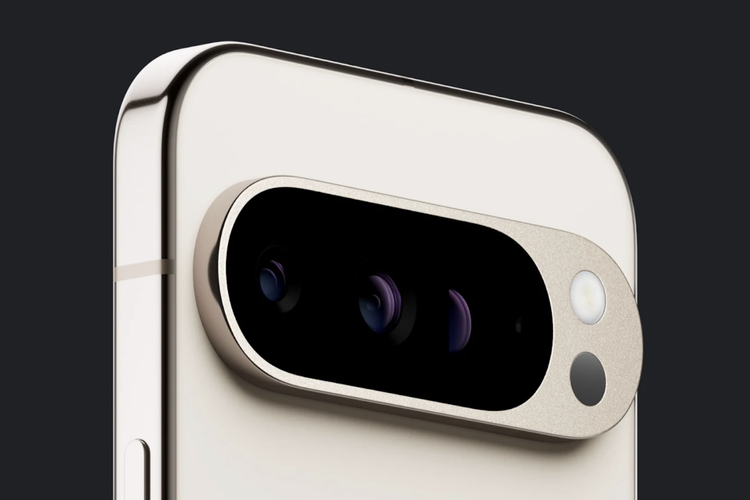 Deretan lensa kameranya juga terlihat mendominasi modul. Hanya ada sedikit ruang di sebelah kanan untuk menyematkan lampu kilat LED. Pantulan kamera memperlihatkan Pixel 9 Pro hadir dengan tiga kamera yang diposisikan sejajar secara horizontal.