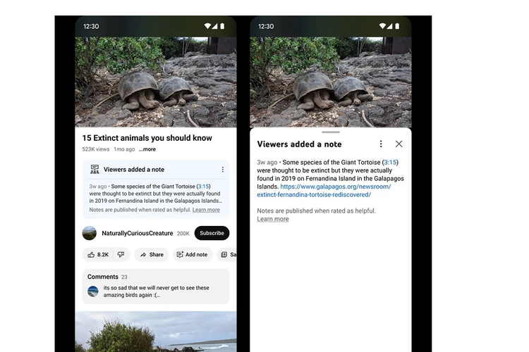 Catatan itu juga dilengkapi tanda waktu (timestamp),agar pengguna lainnya bisa menemukan informasi yang tidak akurat itu di video.