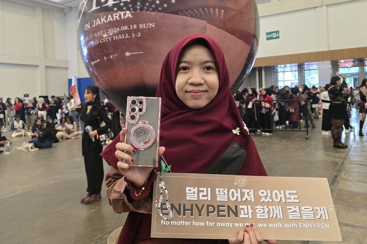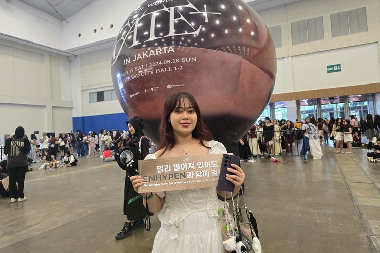 "Ini baru beli HP (Galaxy S24 Ultra) sekitar dua ata tiga minggu lalu. Pas mau ganti HP,sekalian mau nonton konser Enhypen juga. Biar maksimal rekam fancamnya," kata Ayu saat ditemui KompasTekno di holding area di Hall 3a,ICE BSD.