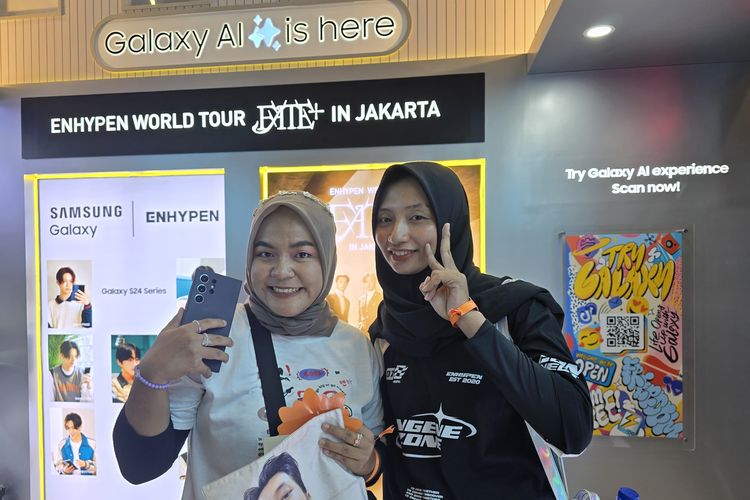 KOMPAS.com/Galuh Putri Riyanto Engene asal Yogyakarta,Erlin (kiri) membeli Galaxy S24 Ultra sekitar sebulan lalu demi bikin video di konser Enhypen. Erlin mengaku sudah mencari tutorial supaya fancamnya bagus. Ia bakal menggunakan fitur Pro Video untuk merekam Heeseung,dan Ni-ki.