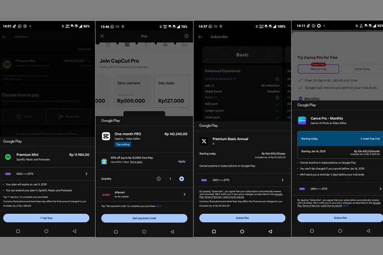 Kompas.com/Lely Maulida Harga langganan sejumlah aplikasi dengan pembayaran melalui Google Play,sudah menggunakan skema PPN 12 persen