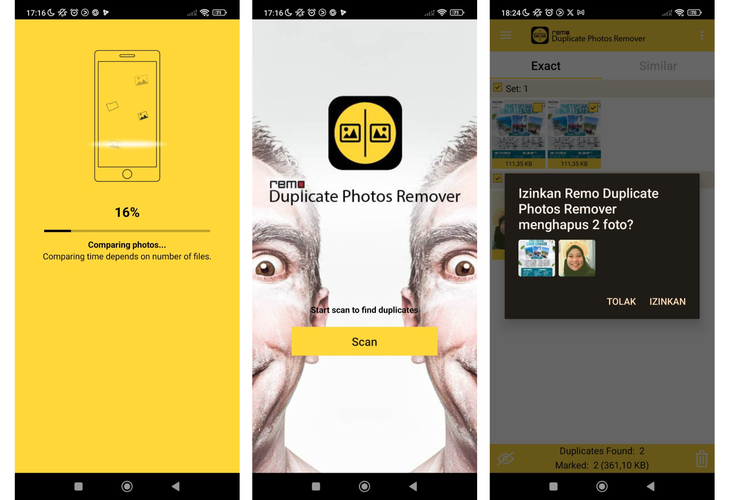 Selanjutnya tunggu aplikasi memindai beberapa detik untuk menemukan foto duplikat