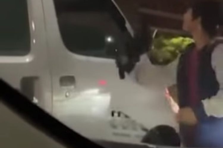 Para pelaku memanfaatkan momen itu dengan mendatangi mobil-mobil yang kacanya terbuka dan merampas barang berharga milik korban. Salah satu pelaku terlihat membawa celurit untuk mengancam korban.