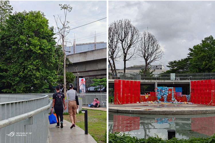 Foto-foto yang kami ambil,baik sore maupun malam hari,mengandalkan kamera utama ROG Phone 8 yang memiliki resolusi 50 MP (f/1.9,PDAF,gimbal OIS). Kamera ini bisa dibilang mampu menangkap obyek bergerak dengan cepat,sehingga bisa diandalkan untuk memotret aktivitas human interest.
