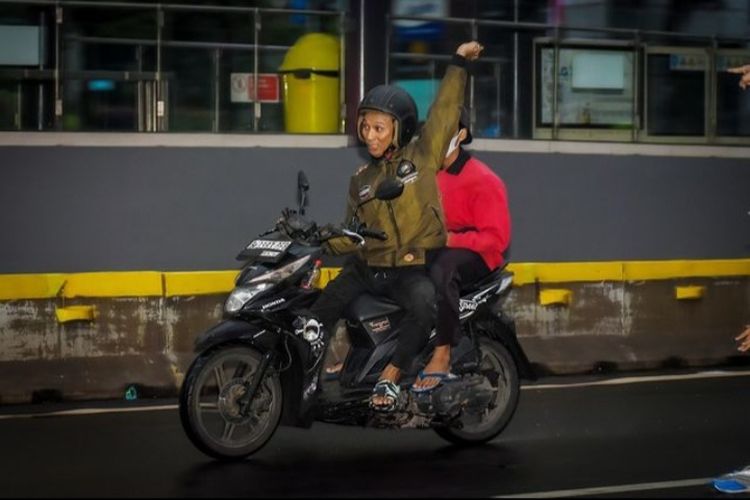 Foto-foto penjambret itu seketika viral di media sosial X. Wajahnya terlihat jelas di foto itu,begitu pula dengan pelat nomor motor B 3983 PFB yang digunakannya.