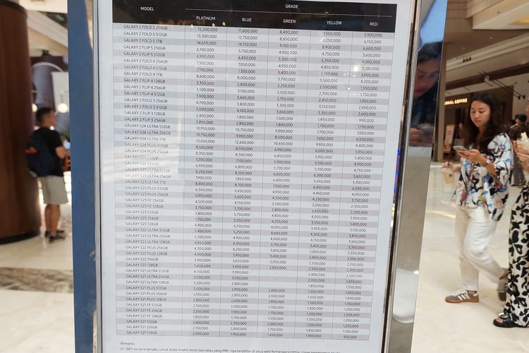 Khusus smartphone Samsung,pengguna bisa melihat daftar harga ponsel lawas yang ingin ditukar langsung di Kota Kasablanka.