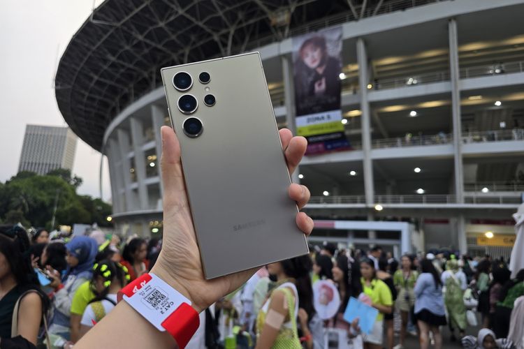 KOMPAS.com/Galuh Putri Riyanto Ilustrasi Samsung Galaxy S24 Ultra yang dibawa ke konser NCT Dream pada Sabtu (18/5/2024) di Stadion Gelora Bung Karno (GBK),JakartaRekam fancam dengan resolusi 4K
